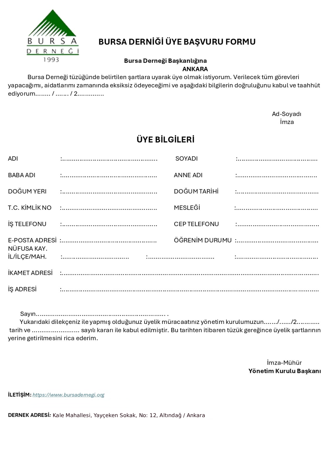 Üye Başvuru Formu